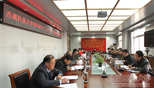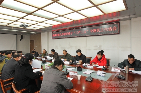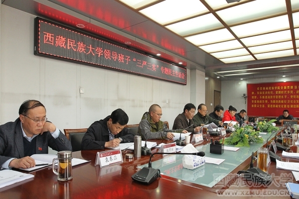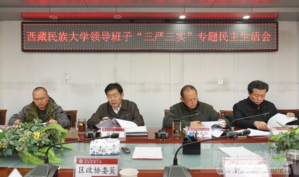 校党委副书记、校长扎西次仁同志代表学校领导班子进行了对照检查。他深入分析了学校领导班子在修身做人、用权律己、干事创业,守纪律、讲规矩以及落实党风廉政建设主体责任和监督责任等三方面存在的不严不实问题和具体表现,针对存在的问题,客观、实事求是地从理论学习、理想信念、宗旨意识、党性修养和创新意识等方面对问题产生的根源进行了深入剖析。同时,扎西次仁校长代表学校领导班子提出了下一步的努力方向和改进措施:一是深化学习,把好开关,以专题教育提素质;二是聚焦症结,问题开路,以专题教育促深入;三是凝心聚力,夯实基础,以专题教育建长效;四是深化改革,寻求突破,以专题教育求实效。