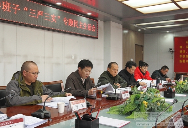 根据《西藏自治区纪委机关区党委组织部关于开好“三严三实”专题民主生活会的通知》(藏组发〔2015〕346号)精神和自治区教育工委的要求,12月28日,学校以践行“三严三实”为主题,召开校级领导班子专题民主生活会。学校领导班子成员(副校长唐泽辉同志因参加自治区强基惠民驻村活动请假)出席会议。学校纪委、党委组织部、办公室、宣传部、学生工作部主要负责同志和自治区政协委员、教务处副处长、质量监控中心高明教授受邀列席会议。会议由党委书记、副校长杜建功同志主持,自治区教育工委办公室副主任陈飞同志到会全程指导。