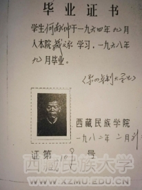 我们又是幸运者。在校期间,亲身经历了学校的更名,见证了学校和西藏社会的发展变迁。藏文系68届毕业生成为学校更名后第一届本科毕业生,并由此成为同学们人生道路的重要转折点。是学校领导和老师教书育人,使我学会了如何做人做事;是所学专业搭起了桥梁,拉近了与藏族人民的距离,加深了感情,促进了工作。我进藏后,根据当时的政策,先分到林芝地区驻军52师学生连接受再教育,后于1970年6月分配到拉萨市米林县(现属林芝市)工作。1984年10月调到拉萨市人大常委会机关,1991年内调回原籍河南省临颍县人大常委会。在藏工作20多年,把青春年华献给了边疆无怨无悔。在藏期间所见所闻,民族学院毕业生遍布全区各条战线,其中大部分人已成为领导骨干或业务骨干,在西藏建设事业中发挥了重要作用。事实说明,民族学院桃李满天下,不愧为“西藏干部的摇篮”。