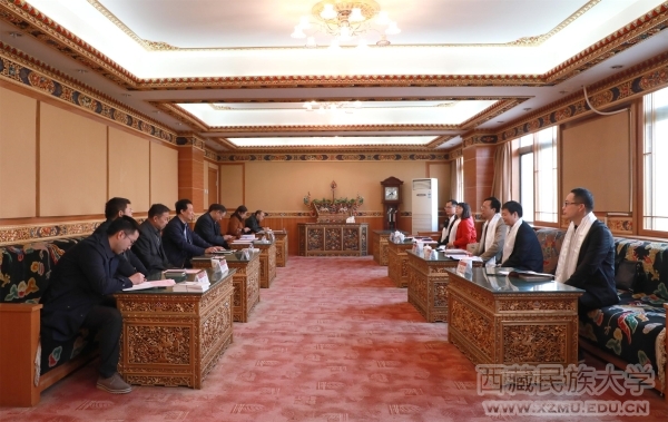 座谈会上,刘凯代表学校对王贵荣一行表示热烈欢迎!刘凯谈到,2018年10月15日,在民大欢庆60华诞的美好时刻,我们接到了习近平总书记的贺信,全校各族师生感受到党的温暖和无比的力量,也让我们再一次感受到了党中央对西藏高等教育、对我校的关心关爱。站在新的历史起点上,我们将用贺信精神统领学校工作全局,始终牢记总书记的谆谆教诲,统一全校师生思想,进一步解放思想、真抓实干、奋力追赶,努力建设具有中国特色、西藏特点的一流民族大学,用实际行动回报习近平总书记和党中央的关心厚爱!刘凯还向来宾介绍了学校60年来的办学历程等情况。