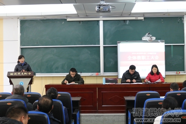 第二项由扎西拉姆传达了大学党委书记欧珠主持的大学开学前动员大会的会议精神,并代表学校做新学期动员讲话,安排了本学期重点工作。扎西拉姆对上学期学校的工作表示了肯定,并对新学期的工作提出“三个加强”,即加强教育教学常规管理、稳步提升教学质量;加强思想宣传,做好德育工作;加强安全维稳工作,确保校园和谐稳定。希望全体教师从三点要求出发,确保附中安全维稳和教育教学工作顺利进行,要求全体教师切实将学校和个人的各项工作付诸行动落到实处,能够不忘初心、砥砺前行。