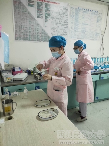 医学部基础医学院藏药筛选团队的赵勤教授、朱敏侠副教授、张晓英博士带领团队成员正在探讨实验研究方法的建立及试剂的配制工作,在今天“三八”妇女节这个特殊的节日里,研究团队的女神们过节实验不停歇。赵勤老师说,新型冠状病毒疫情严重,不仅给人们的健康带来了威胁,也给人们的生活造成了不便和恐慌,因此急需寻找有效的防治药物。仁青常觉是我国藏族验方,素有藏成药中“宝中宝,百病克星”之称,具有清热解毒,调和滋补的功效,能有效预防和治疗多种疫病。近期,藏药筛选团队开展了《基于新冠病毒的免疫应答研究藏药仁青常觉免疫调节作用及调控机制》《以ACE、ACE2为靶向探讨仁青常觉对新型冠状病毒肺炎的保护作用》两项研究工作,从仁青常觉对机体免疫调节和对新冠病毒侵犯机体的靶点ACE、ACE2等多个方面研究其治疗新冠病毒肺炎的可能机制,为开发治疗新冠病毒的有效防治药物提供理论依据。
