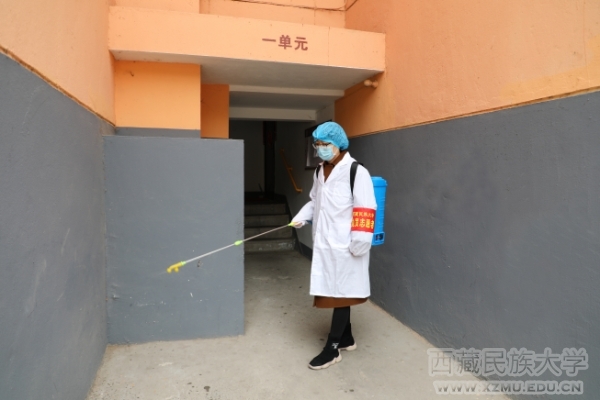上午10点,医学部17级护理班阿旺才宗、其美拉珍和她的小伙伴们,相约来到青年公寓,完成今天的消杀任务。阿旺才宗说,我们要以抗击疫情的一线医护人员为榜样,向他们学习。练就过硬本领,毕业后到人民需要的地方去,服务社会服务人民,不辜负国家对我们的希望和寄托。