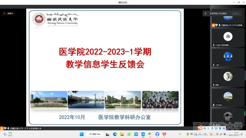 10月25日,医学院通过腾讯会议召开2022-2023-1学期教学信息学生反馈会。医学院副院长胡群英、学校督导员莫芳萍,临床医学院教学科科长文永安、医学院教学办部分教师以及19-22级各班(实习班级除外)学习委员与信息员参加会议。