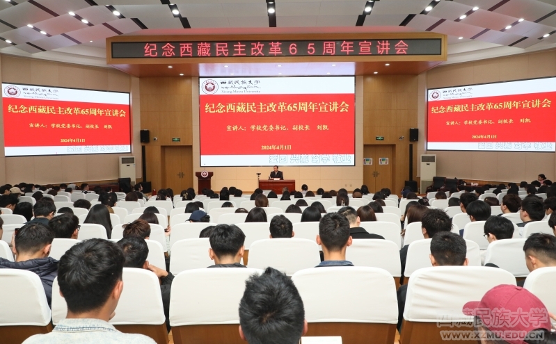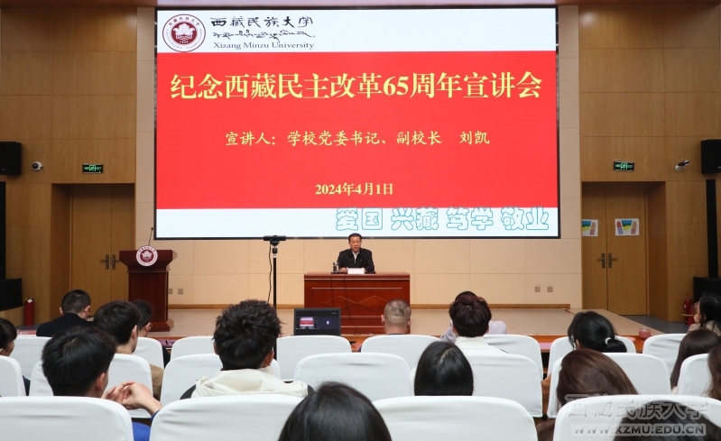 为纪念西藏民主改革65周年,教育引导各族师生铭记历史、珍惜当下、不忘党恩、勇毅前行,4月1日,学校党委书记刘凯为师生开展了纪念西藏民主改革65周年主题宣讲。会议以腾讯会议的形式设立渭城校区主会场和秦汉校区分会场,700余名师生代表现场聆听了宣讲。