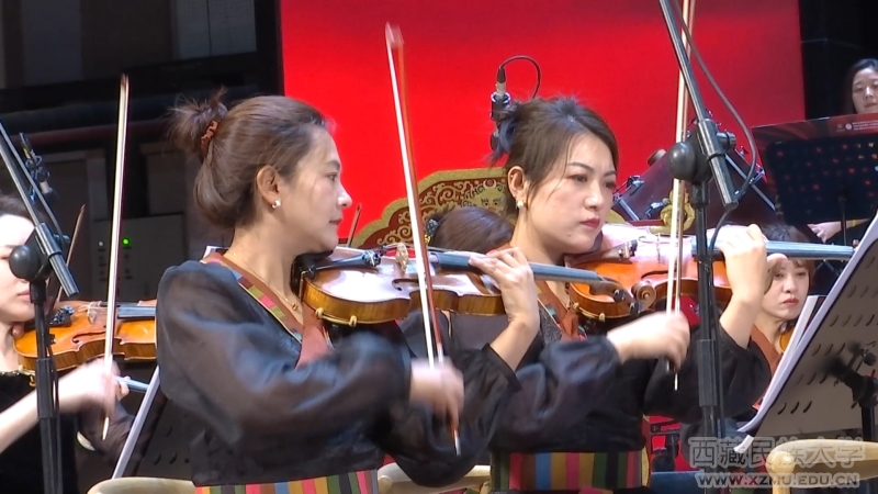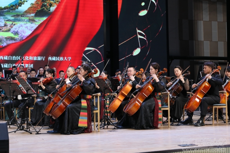 当艺术家们的指尖拨动琴弦,整个世界仿佛都安静了下来。每一个音符都精准地击中了观众的心灵,让各族师生在旋律中找到共鸣,感受音乐带来的力量与温暖。这一部波澜壮阔的交响乐,如同奔腾不息的音乐之河,在文体馆里回旋飘荡,经久不息。明快的节奏、瑰丽的色彩、抒情的旋律、热烈的气氛充分描绘出一个充满朝气的新时代西藏风貌。西藏自治区成立近60年来翻天覆地的变化,在跌宕起伏的音乐中得到淋漓尽致的呈现。