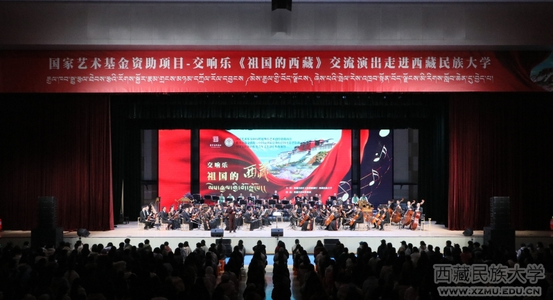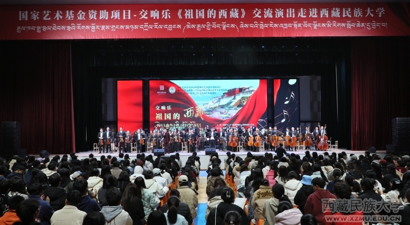 11月16日至17日,由西藏自治区文化和旅游厅主办的交响乐《祖国的西藏》交流演出在我校渭城校区文体馆成功举办,来自西藏自治区歌舞团交响乐团、甘肃交响乐团的80余位艺术家携手为各族师生带来了一场视觉、听觉与心灵的艺术盛宴。学校领导、离退休干部代表、师生代表以及西藏自治区人民政府驻咸阳干休所职工代表等5000余名观众到场观看。